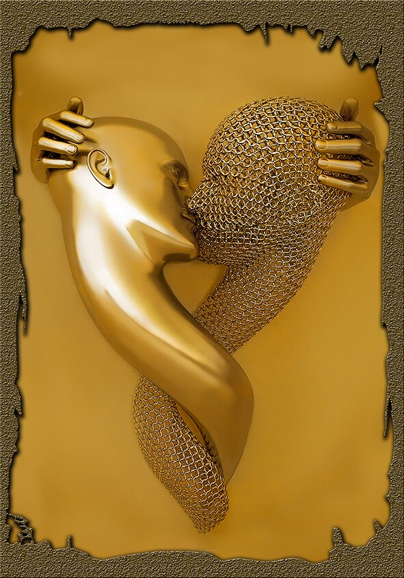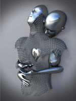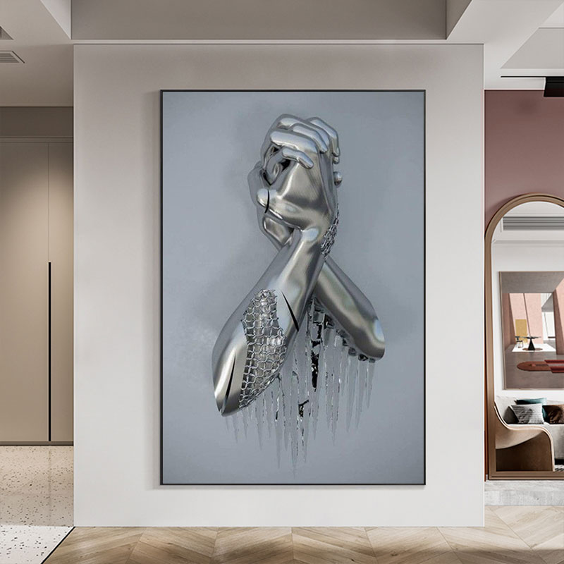 3D Love Heart Grey Art Painting on Canvas Metal Figure Statue Wall Pictures