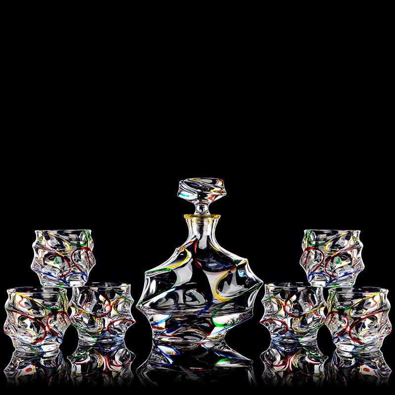 -51%Colorful hand painted wine glass whiskey glass set crystal glass wine bottle set