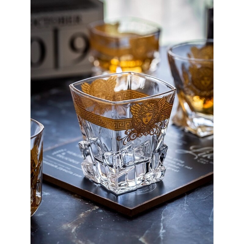 Creative Crystal Whiskey Cup Medusa Gold Portrait Multi-Functional
