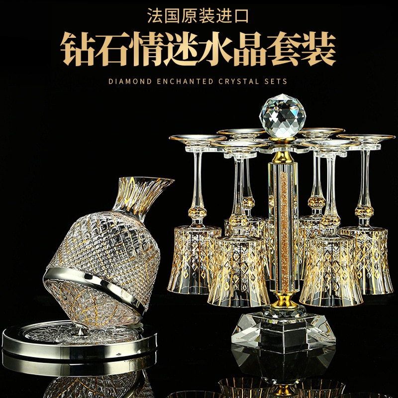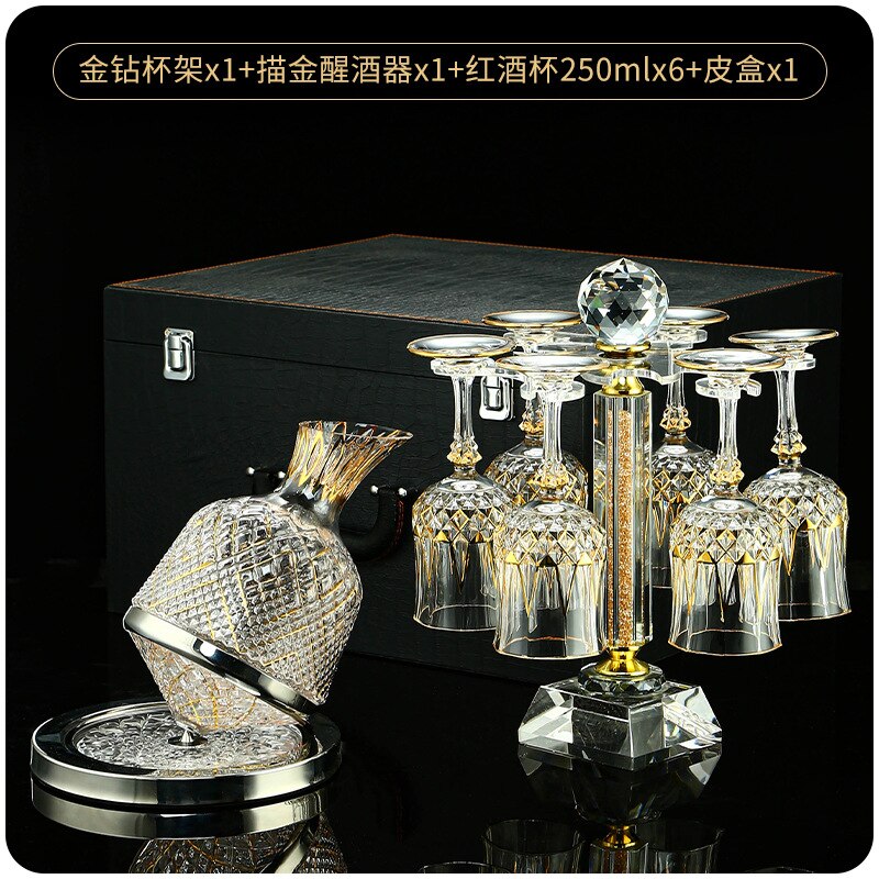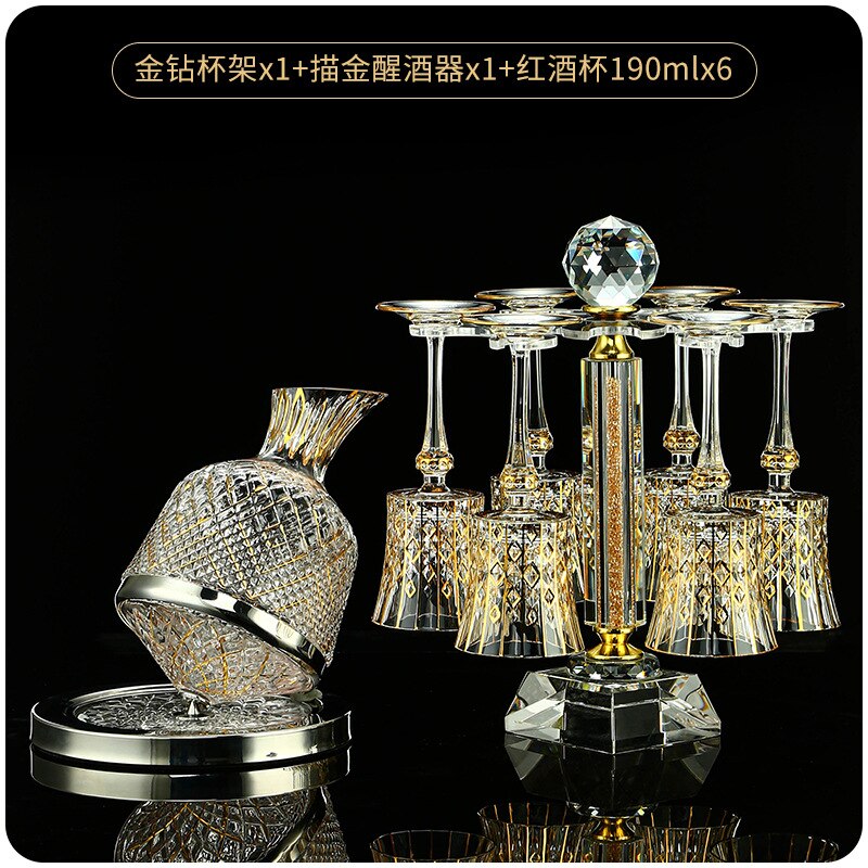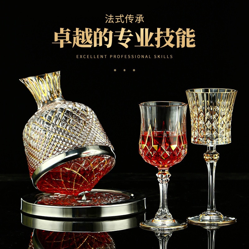 France imported high-grade gold tracing crystal red wine glass, high wine glass, rotating wine aerator, household set wine ware