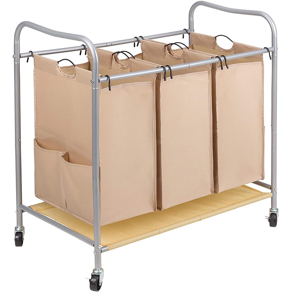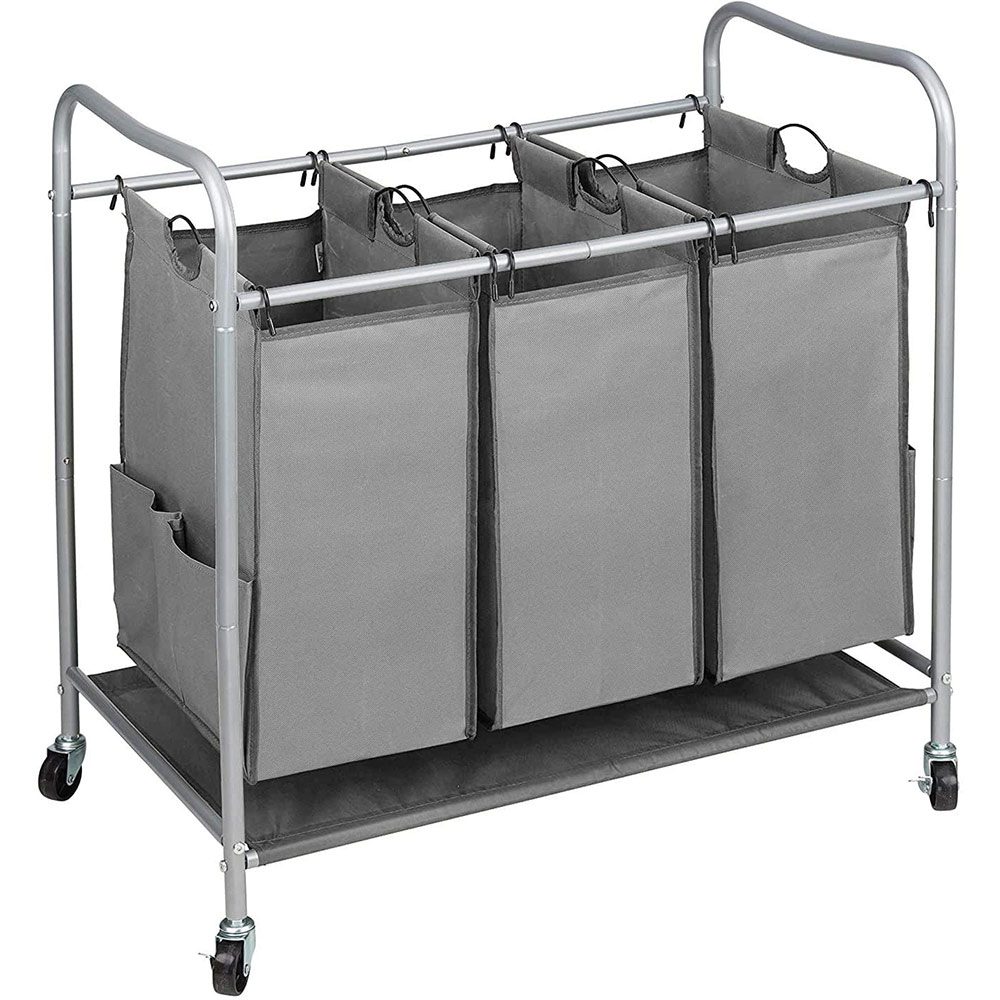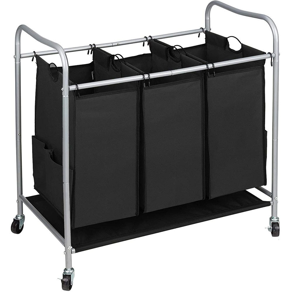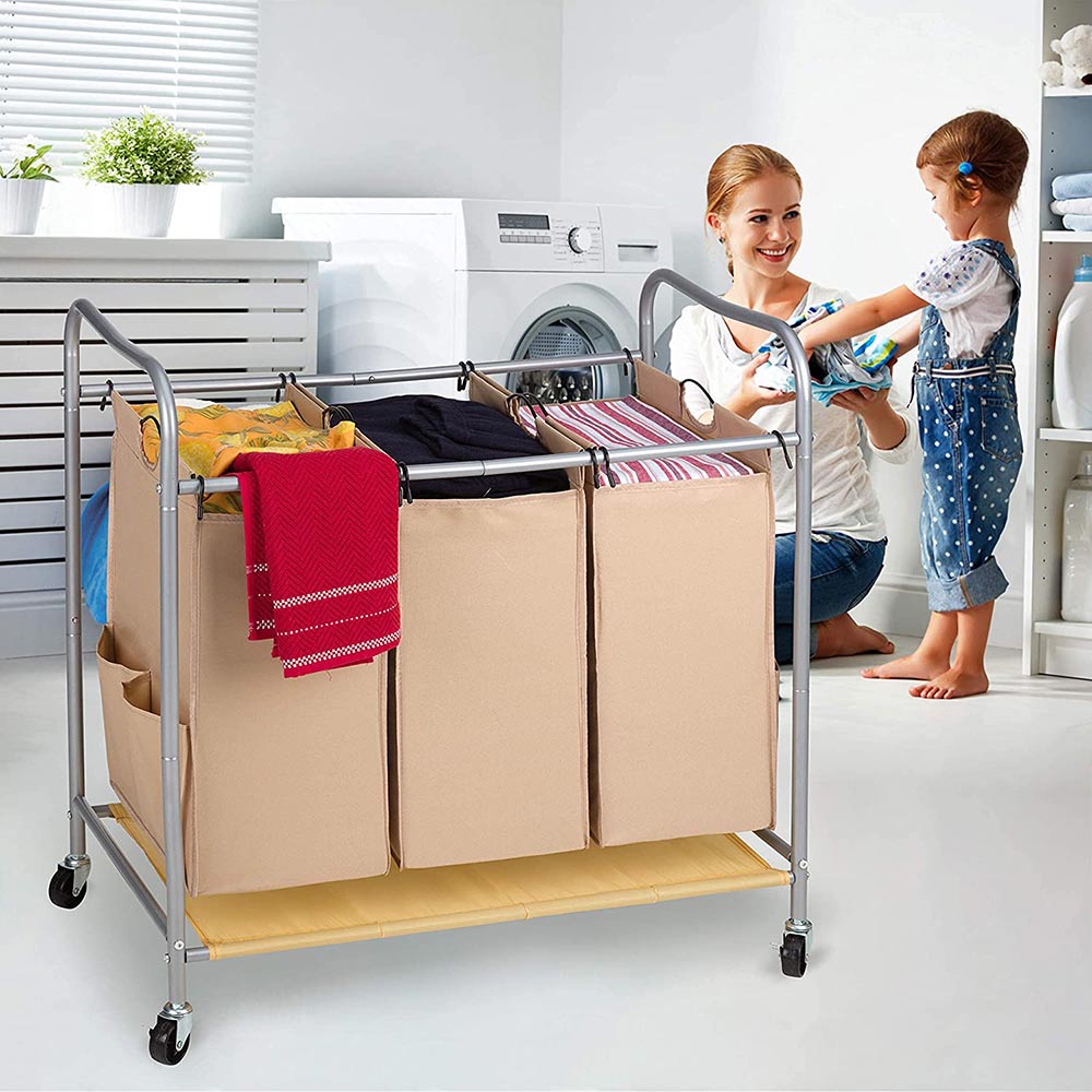 JINAMART Heavy Duty Laundry Sorter 3 Bag Laundry Hamper Basket with Wheels Storage Cart + 2 Pockets Each Side.