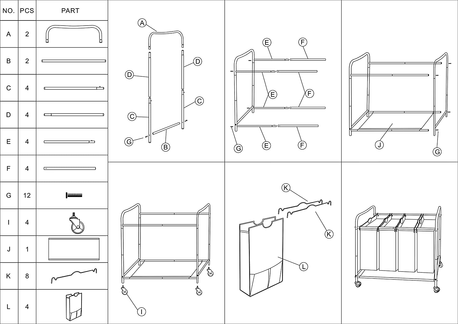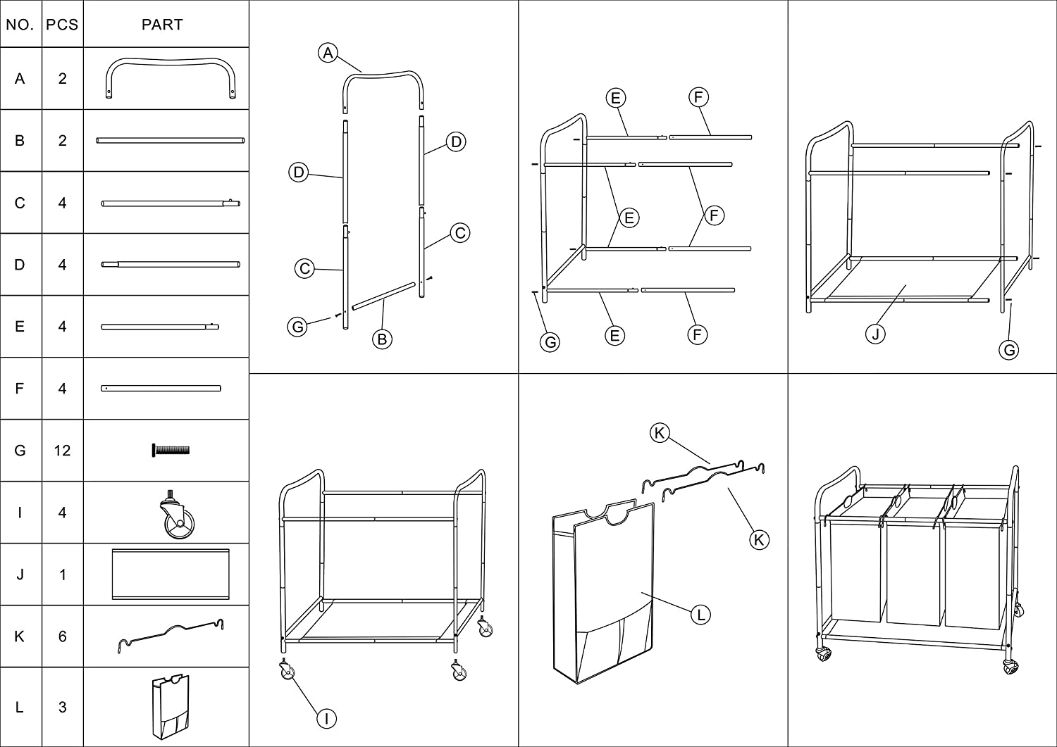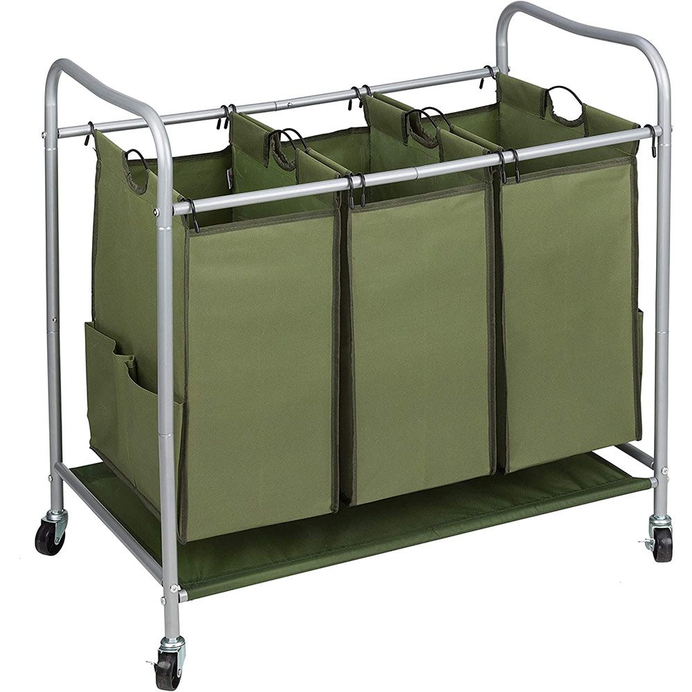 JINAMART Heavy Duty Laundry Sorter 3 Bag Laundry Hamper Basket with Wheels Storage Cart + 2 Pockets Each Side.
