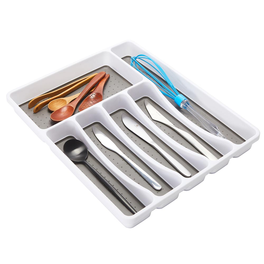 - NON-SLIP: Soft, non-slip feet hold drawer organizer in kitchen.