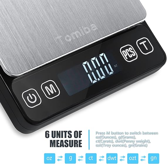 Tomiba Digital Kitchen Scale High Accuracy Precision Multifunction with Back-Lit LCD Display