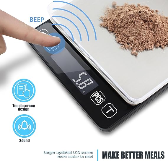 - Easy To Operate,Easy to read with LCD Display and so simple to change from grams (g), ounces (oz), pounds (lbs) and milliliter (ml) by pressing the single button. Your will save more time on cooking/baking because you can weigh things accurately just for once by using this kitchen scales.